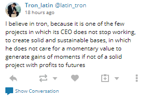 And, gauging by many responses I got to the question, “Why do you believe in Tron?”, the platform (and others) are speaking to a growing number of others also – and not just with the allure of financial gain.