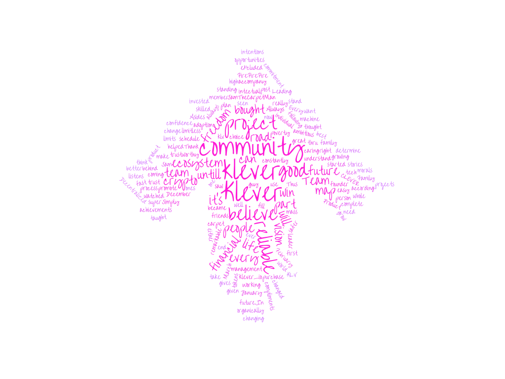 The word that stuck out the most: Community. After that, you see “future, team, map, reliable, good, freedom, people, financial, ecosystem” and more. Grouped, replies seemed to most often fill idea buckets centered largely on community, financial freedom, and the Klever team itself.